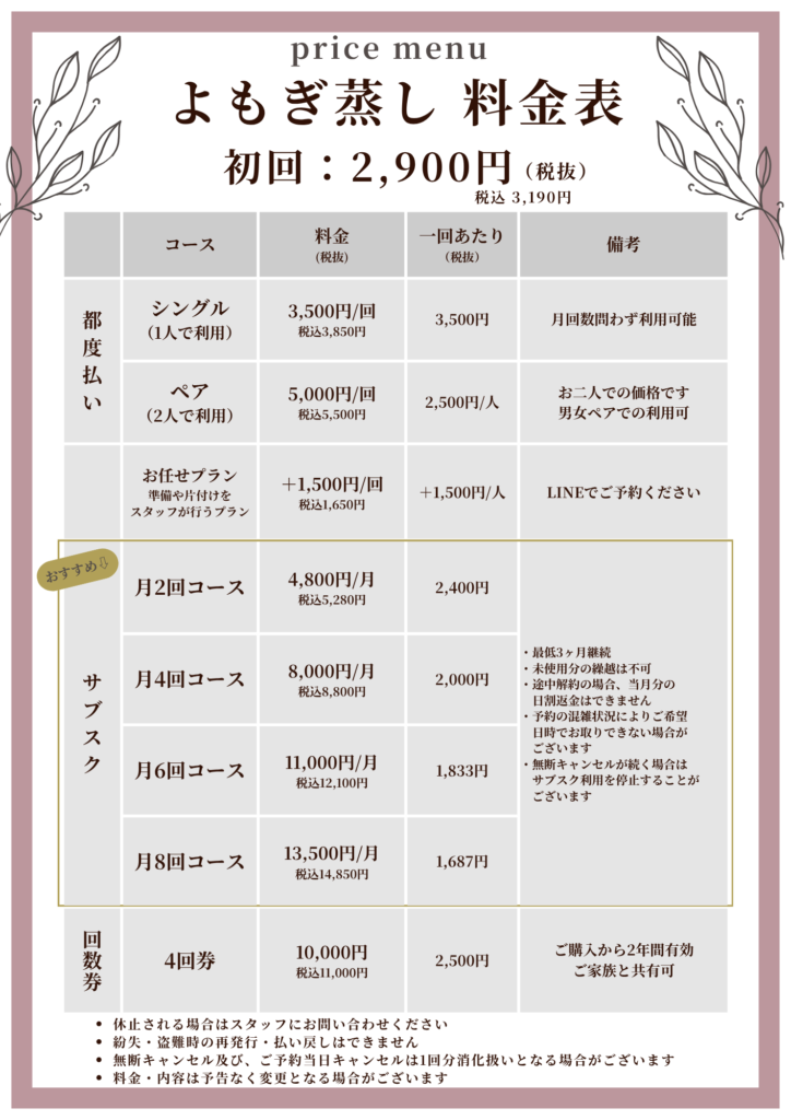 【よもぎ蒸し☘️初回ご予約のご案内】